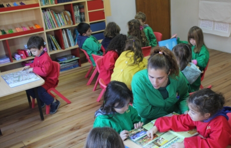 Junto a su maestra, los niños escuchan, conversan, miran, preguntan, se acercan a la poesía, al cuento; pasan paulatinamente de mirar libros a pedir que les lean… y es a través de un descubrimiento personal que van decodificando el tan “misterioso” mundo de las letras, disfrutando del acceso natural a la lectura y la escritura, al mundo de las ciencias naturales, la biología, la matemática, las ciencias sociales.